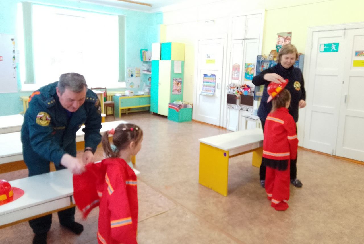 В игровой форме ребятам рассказали о том, как правильно эвакуироваться из горящего здания, поговорили о первичных средствах пожаротушения, огнетушителях.
